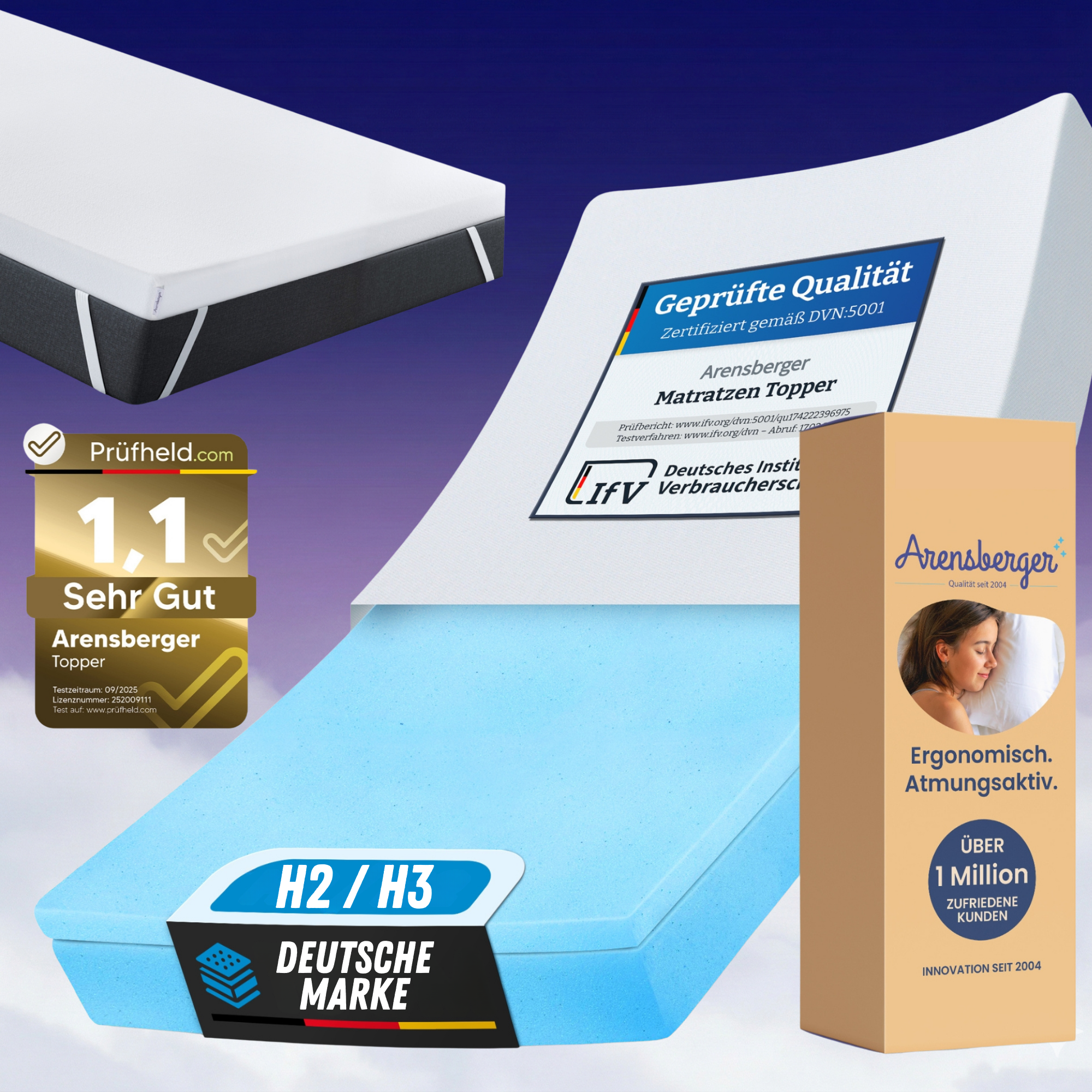 Die Arensberger Topper-Serie steht für gezielte Druckentlastung und spürbare Verbesserung bestehender Matratzen.